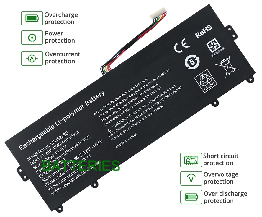 According to the original battery's specifications, we manufactured the LG LBU5228E laptop battery precisely and tested its multiple performances extensively, ensuring that it is fully compatible with the laptop's electronics and software.